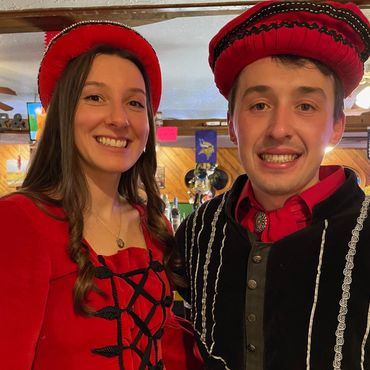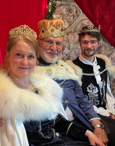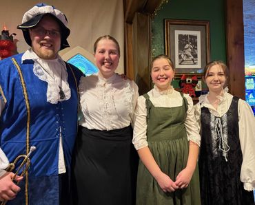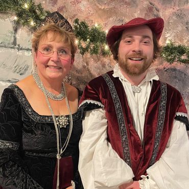 You will be served a 7-course meal beginning with a wassail toast of red wine. The Royal Court will entertain you while the feast continues with chicken dumpling soup, assorted breads, Caesar salad, and an entree of stuffed pork loin, parsley buttered potatoes and confetti corn served family-style. Coffee, and your choice of homemade apple or pumpkin pie, completes the meal.
